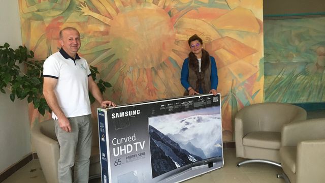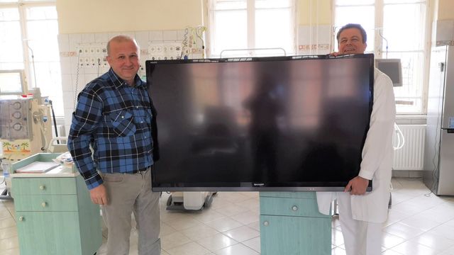 Uzsoki Utcai Kórház orvosigazgatója, Varga József Főorvos Úr,urologiai osztály vezetője, 1db Lcd tv-ét vesz át