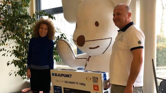 Honvéd Kórház pacemaker részleg vezetője, Duray Gábor főorvos Úr, 2db LCD tv-ét vesz át