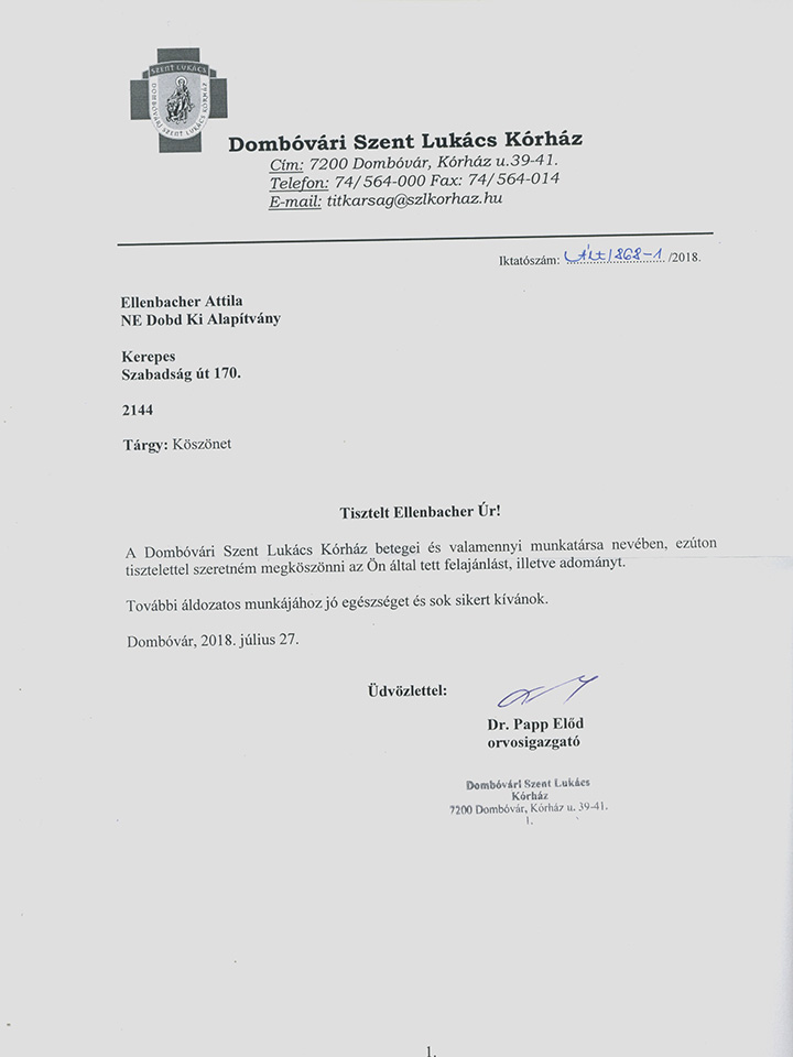 Dombóvári Kórház Köszönőlevél