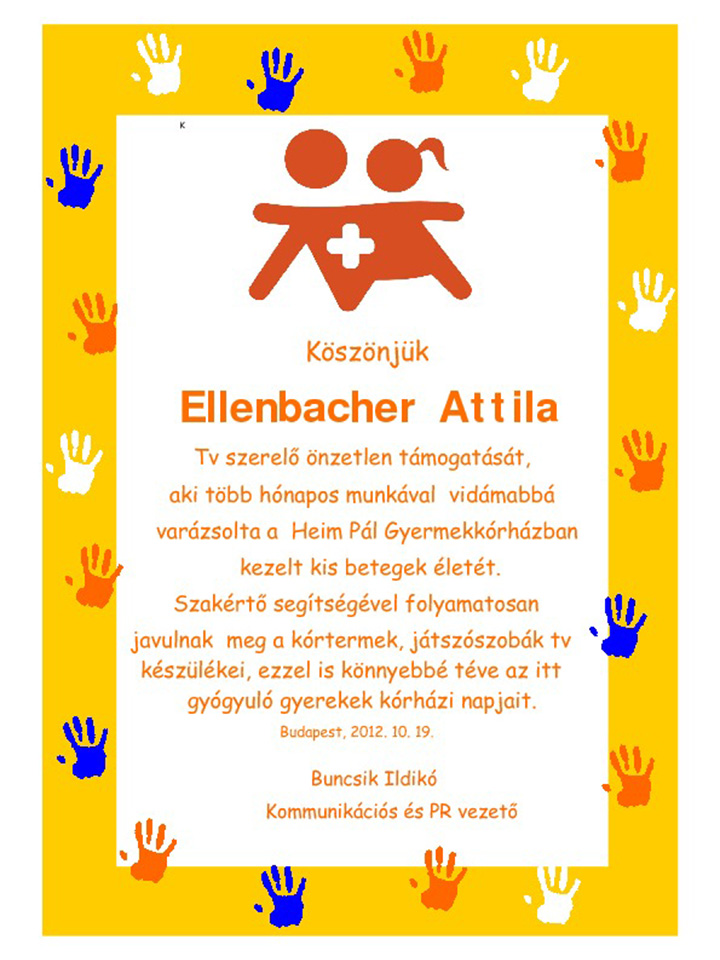 Heim Pál Gyermekkórház köszönőlevél