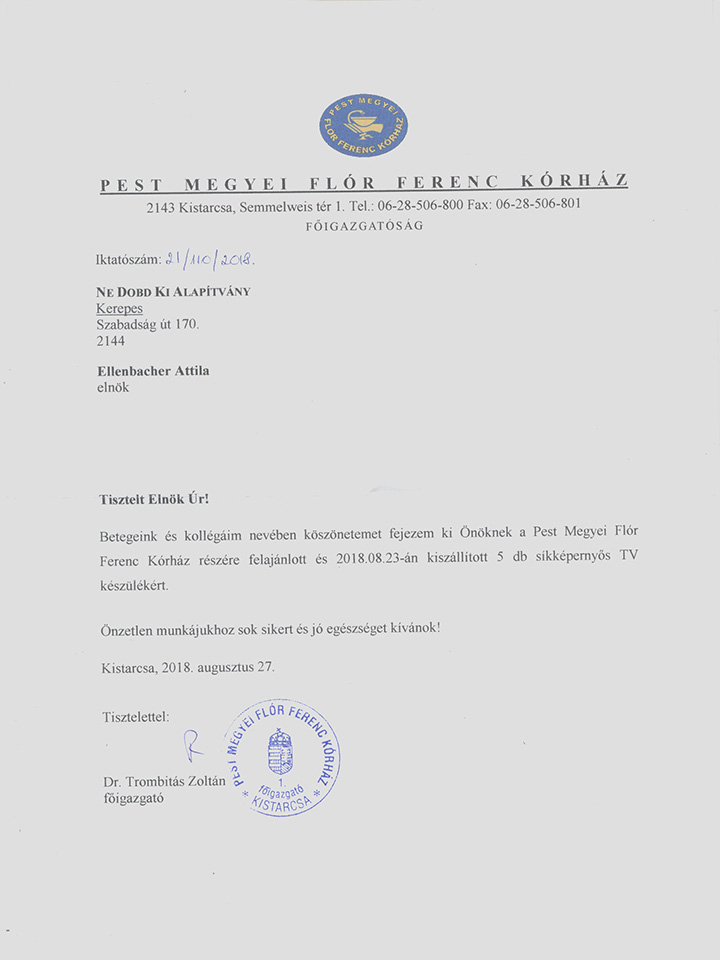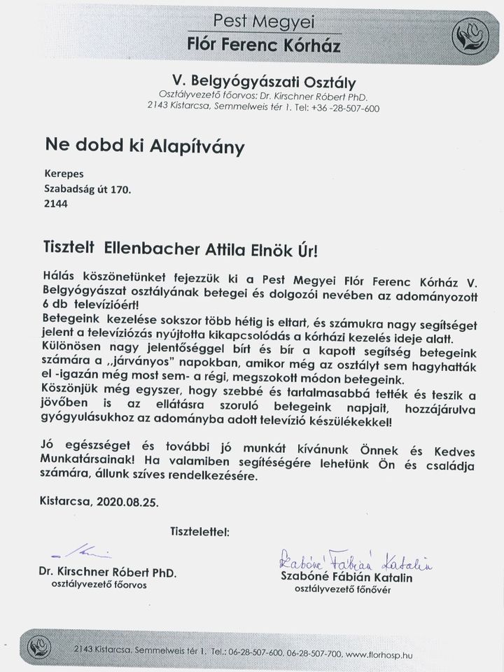 Kistarcsai Kórház köszönőlevél