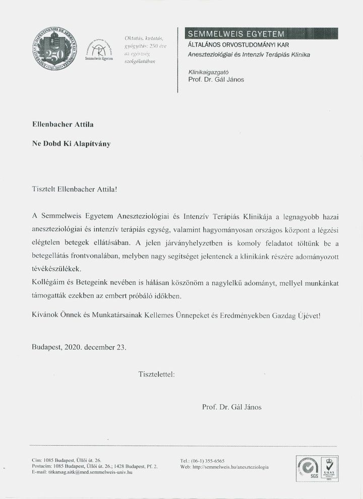 Semmeilweis egyetem köszönőlevél